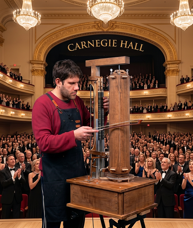 This project completely shatters conventional stereotypes about how modern music should be created and sound. At its core is a unique bowed instrument built from a standard rotating kebab rotisserie machine.